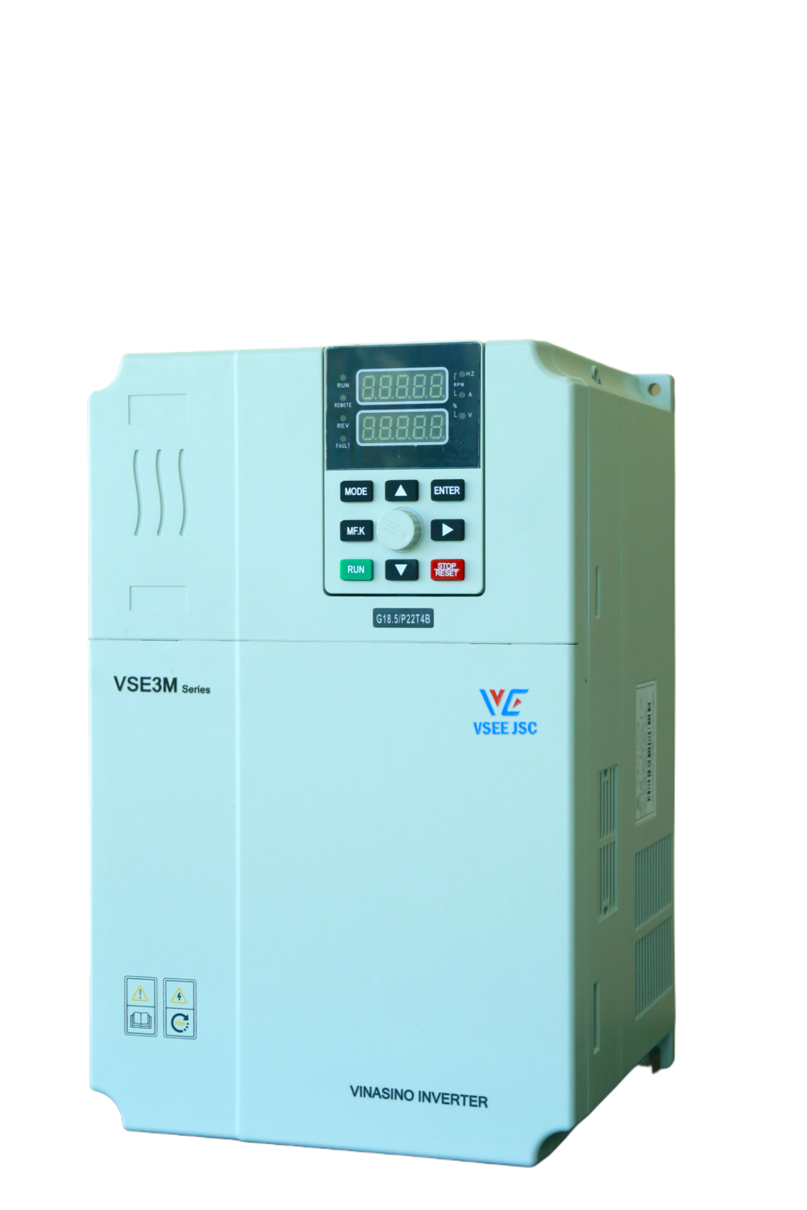 VSE3M là dòng biến tần phổ thông, nhỏ gọn, đa chức năng với dải công suất từ 0.4kW đến 550kW. Biến tần sử dụng phương pháp điều khiển véc-tơ vòng hở, điều khiển V/F và điều khiển mô-men. Với công nghệ điều khiển vector hiệu suất cao, biến tần có thể sử dụng cho cả động cơ không đồng bộ và động cơ đồng bộ nam châm vĩnh cửu. Biến tần tích hợp truyền thông modbus-RTU. Bộ PID tạo điều kiện thuận lợi cho việc điều khiển vòng kín với khả năng mở rộng 16 cấp tốc độ. Dòng biến tần VSE3M được sử dụng rộng rãi trong các ngành công nghiệp như dệt may, sản xuất giấy, đóng gói, chế biến thực phẩm và nhiều dây chuyền sản xuất tự động khác.